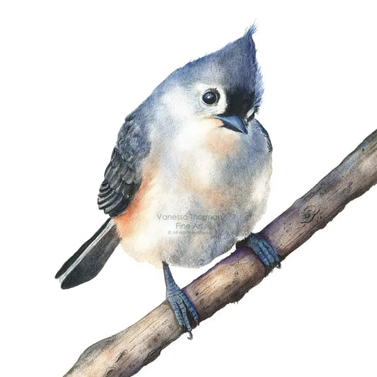 Tufted Titmouse Watercolor Art Print – Cheerful Songbird Illustration – Fine Art Giclée