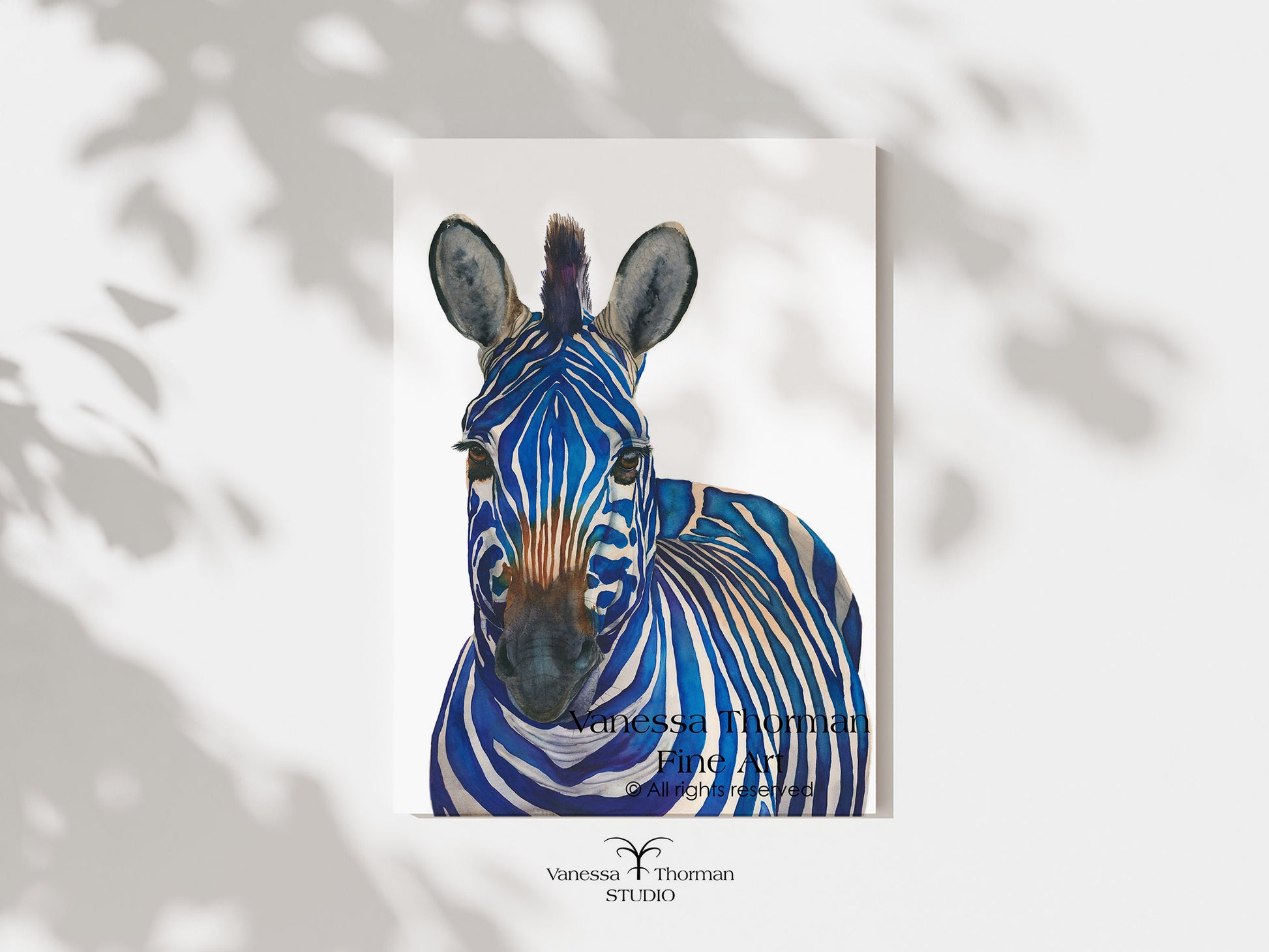 AZUL | Blue Zebra Watercolor Art Print – Fine Art Giclée