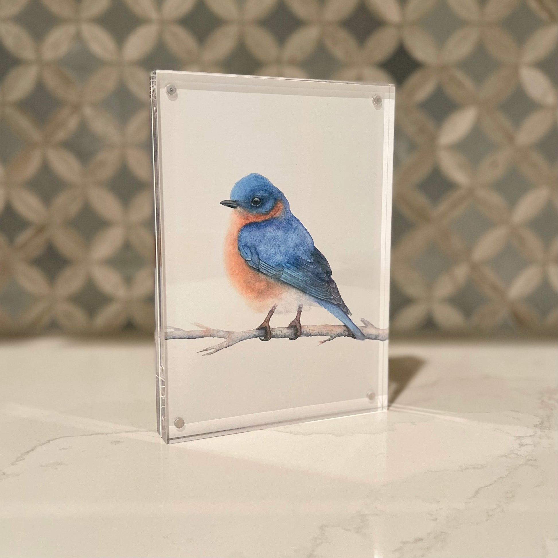 Eastern Bluebird Watercolor Art in Acrylic Block Frame – 5x7 Fine Art Print