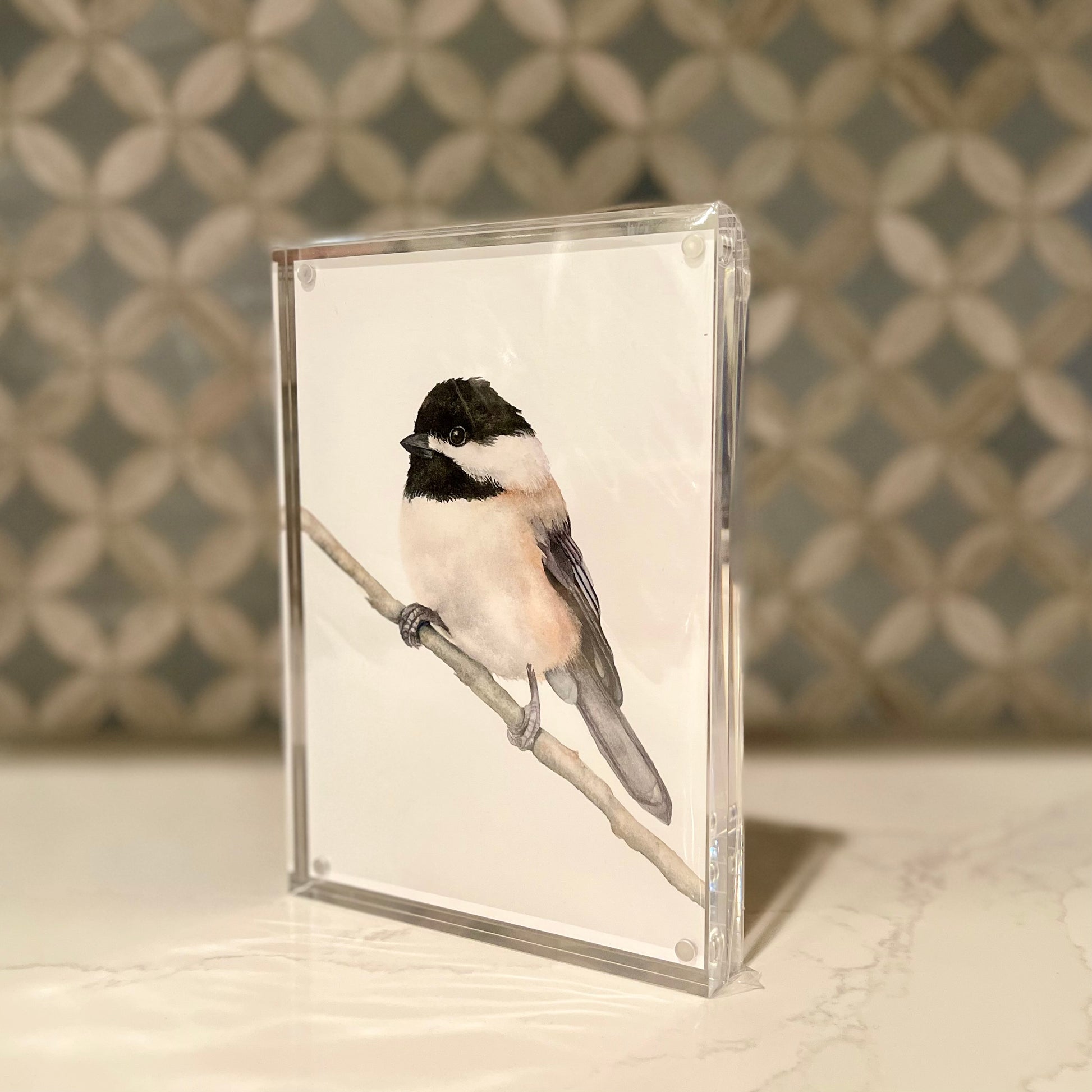 Carolina Chickadee Watercolor Art in Acrylic Block Frame – 5x7 Fine Art Print