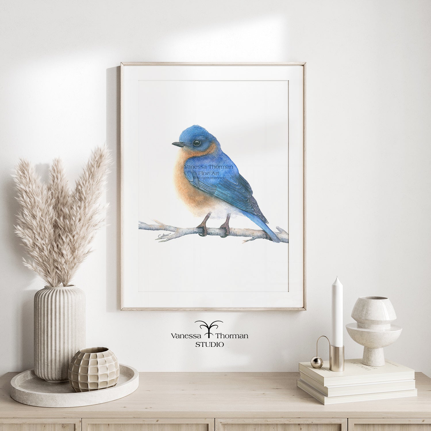 Artist's Insight: Eastern Bluebirds are often associated with joy and renewal, making them a delightful addition to any art collection.