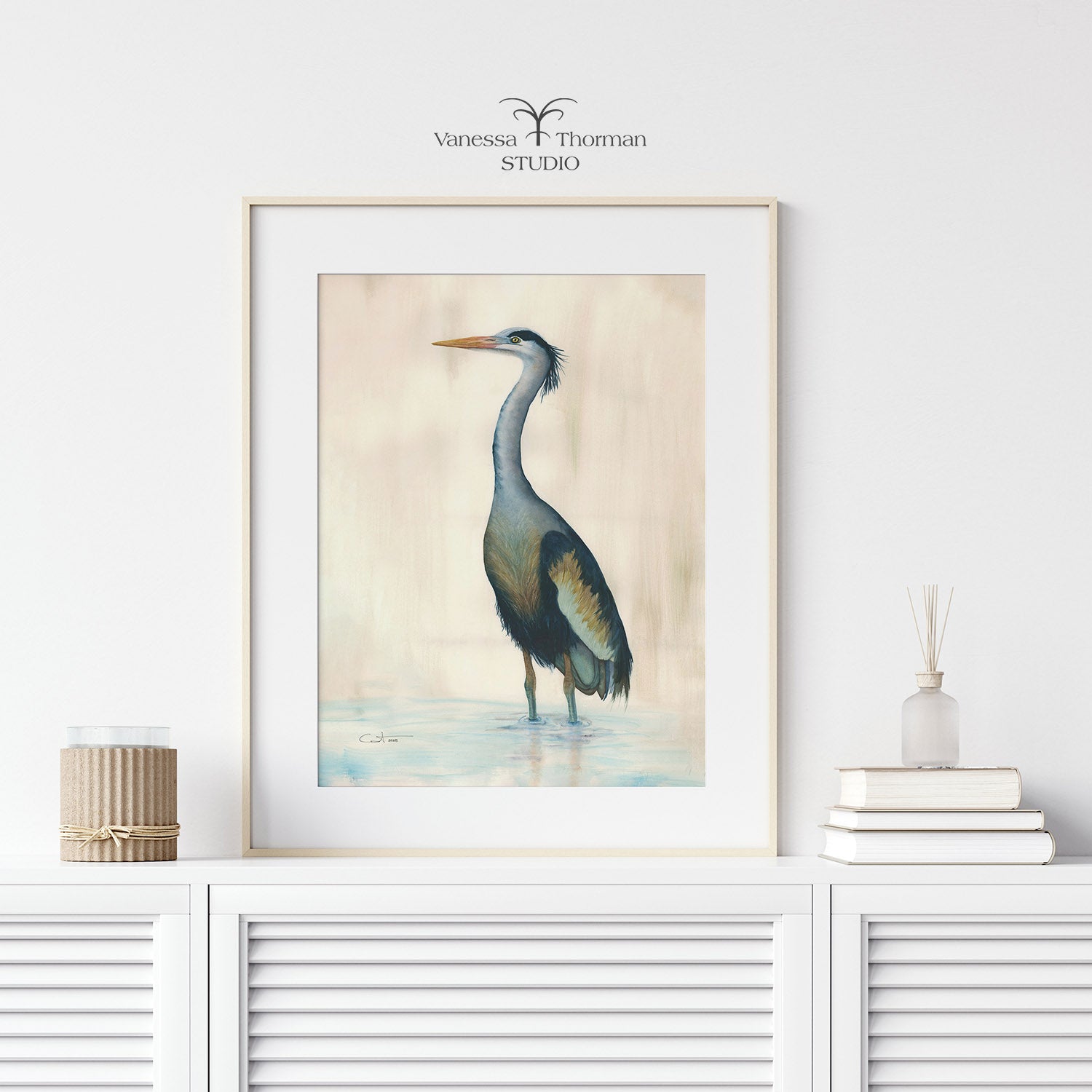 Marsh Heron (Blue) Watercolor Art Print – Coastal Bird Art - Fine Art Giclée