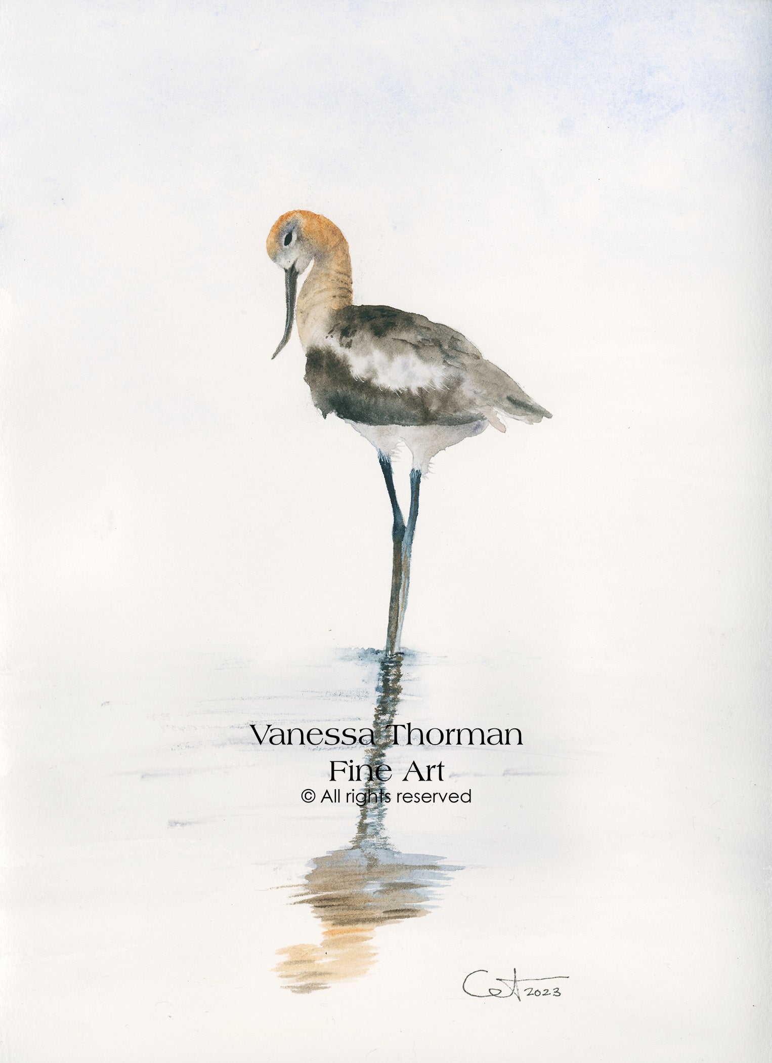 REFLECTIONS 3 | American Avocet | Coastal Bird Original Watercolor Painting