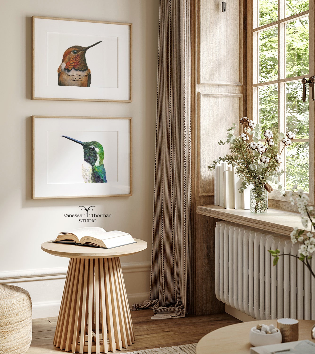 Rufous Hummingbird Portrait | Hummingbird Watercolor Art Print | Bird Art Giclée