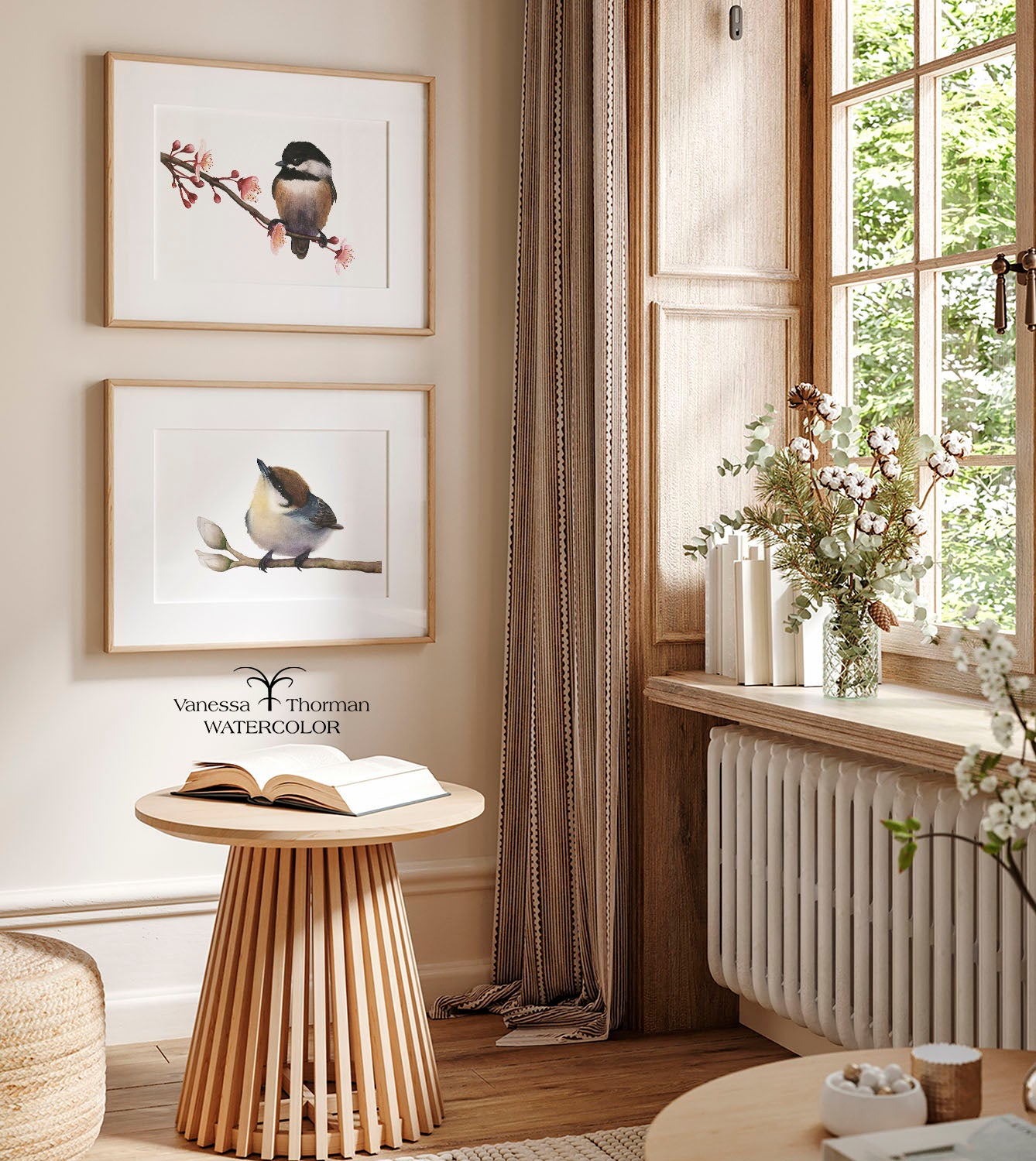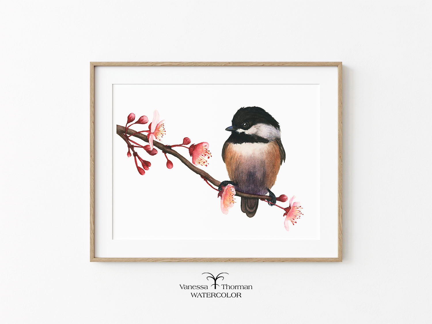 Spring Chickadee | Black-Capped Chickadee Watercolor Fine Art Print